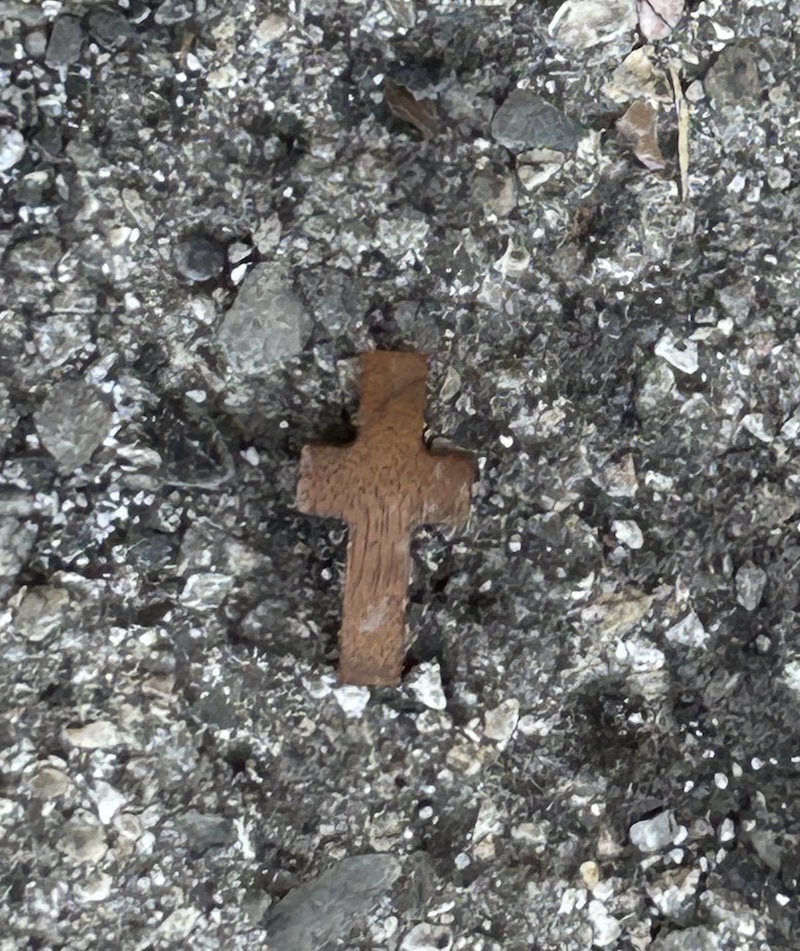 The other day, on my way to a meeting, I parked my car, got out, and saw on the ground a small wooden cross. It was lying there on the pavement. I almost picked it up – it seemed like maybe the universe was giving me a symbol of my faith, perhaps some reassurance. In the end, I decided to leave it there for someone else to find – maybe someone who needed encouragement more than I did that day.